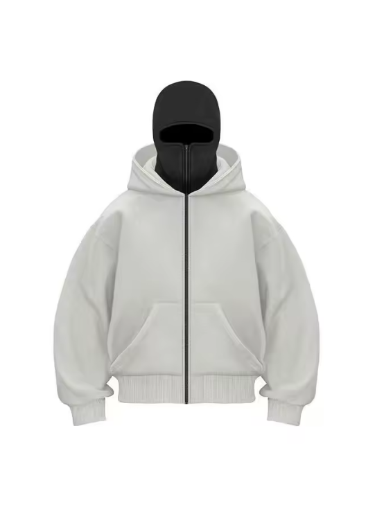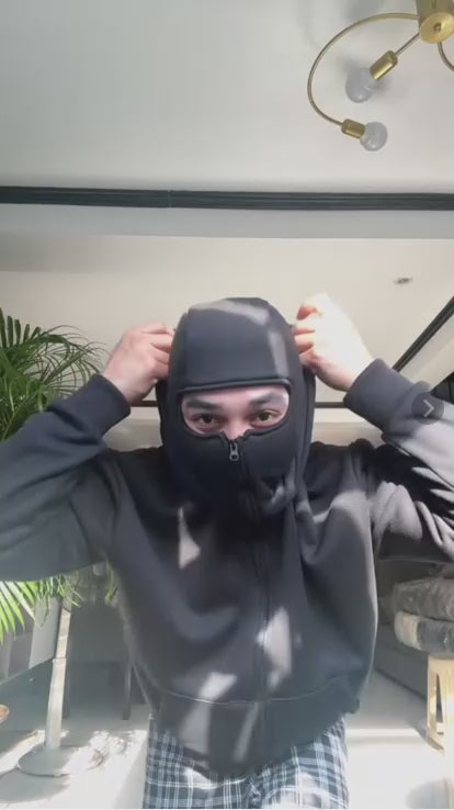 Made with premium cotton-blend fleece, it’s soft on the inside and structured on the outside, keeping you warm while giving off that clean, fitted look. The full-zip ski mask design lets you go from chill to mysterious in seconds — whether you’re on the move, creating content, or just in your zone.